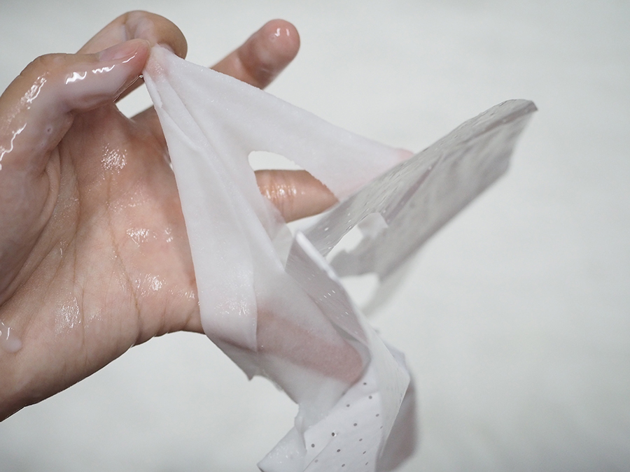ละที่พิเศษคือ ตัวแผ่นมาส์กเขาจะมาพร้อมกระดาษที่จะทำให้เราสามารถจับแผ่นมาส์กได้ง่ายและค่อยลอกออก เพื่อให้แผ่นมาส์กสามารถกระชับกับผิวหน้าได้อย่างดีขึ้นนั้นเองค่ะ