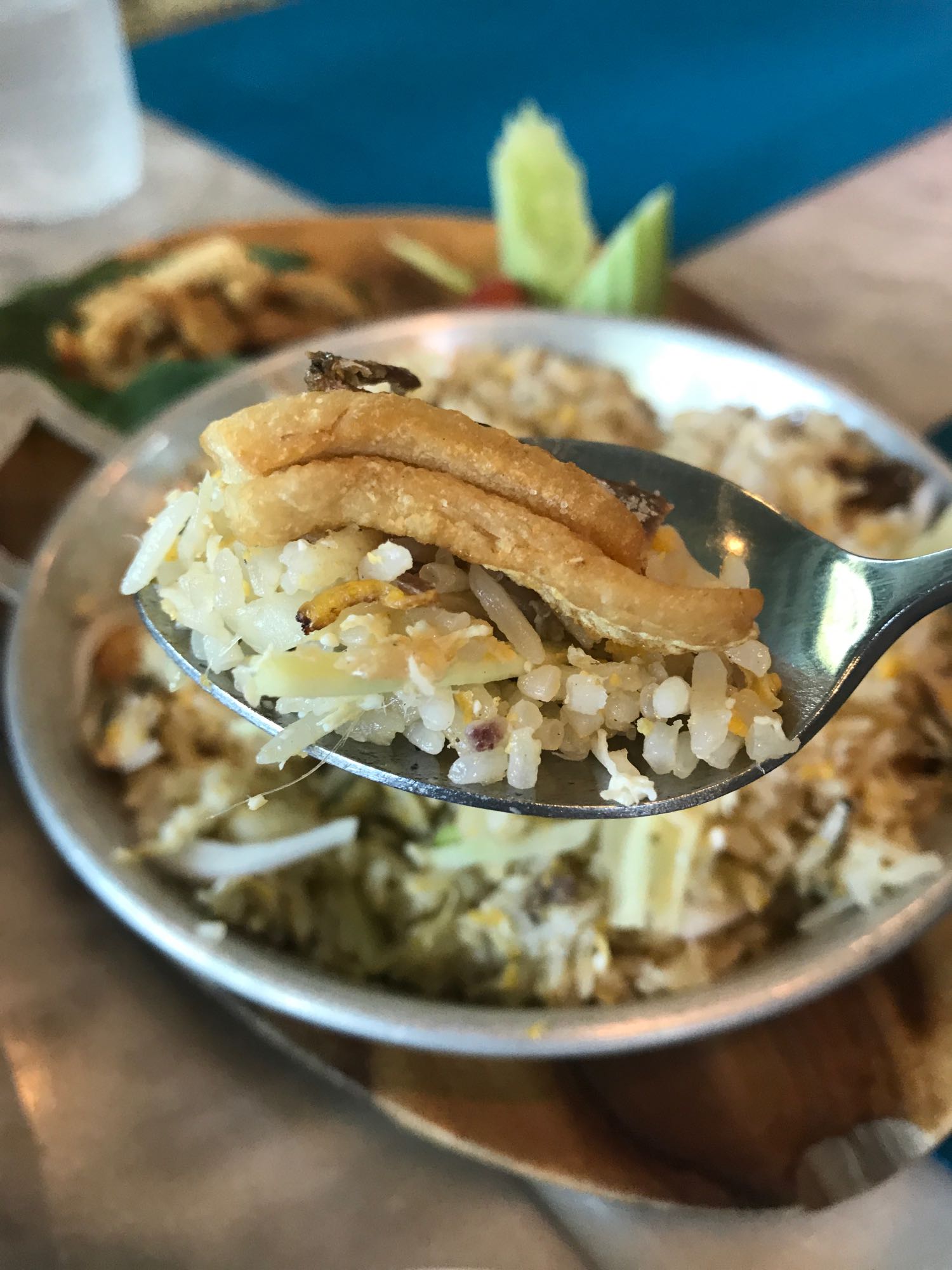 เมนูเด็ดของร้านนี้คือนี่เลย “ข้าวผัดกากหมูปลาทู (145 บาท)” รวมๆแล้วก็ไม่ได้ถึงกับ wow ต้องสั่ง ปลาทูใส่มาน้อยไป และเครื่องหอมแดง มะม่วงก็น้อยไปหน่อย แต่ก็พอได้ค่ะ เพราะกากหมูพระเอกของเรานั้นดีงาม ไม่อมน้ำมันเลย 🍛