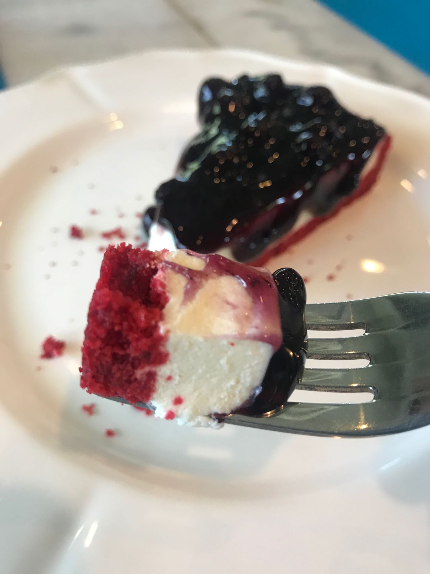 สั่งพายมะม่วงไปแต่วันนี้ไม่มี เลยสั่ง Red Velvet Blueberry Cheese Pie (150 บาท)