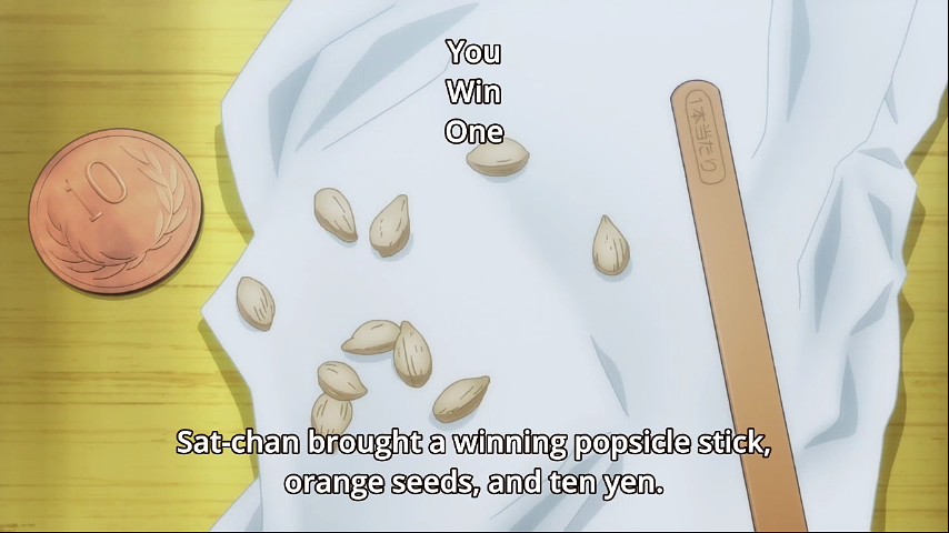 ซัทจัง ไม้ไอติมกับเมล็ดส้มและเหรียญ 10 เยน