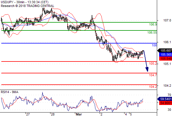 จุดที่ต้องการ: สถานะขายต่ำกว่า 106.00 เป้าหมายต่อไปที่ 105.20 และ 104.70