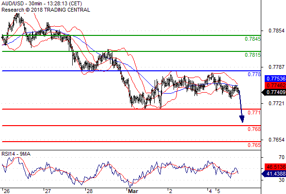 จุดที่ต้องการ: สถานะขายต่ำกว่า 0.7780 เป้าหมายต่อไปที่ 0.7710 และ 0.7680