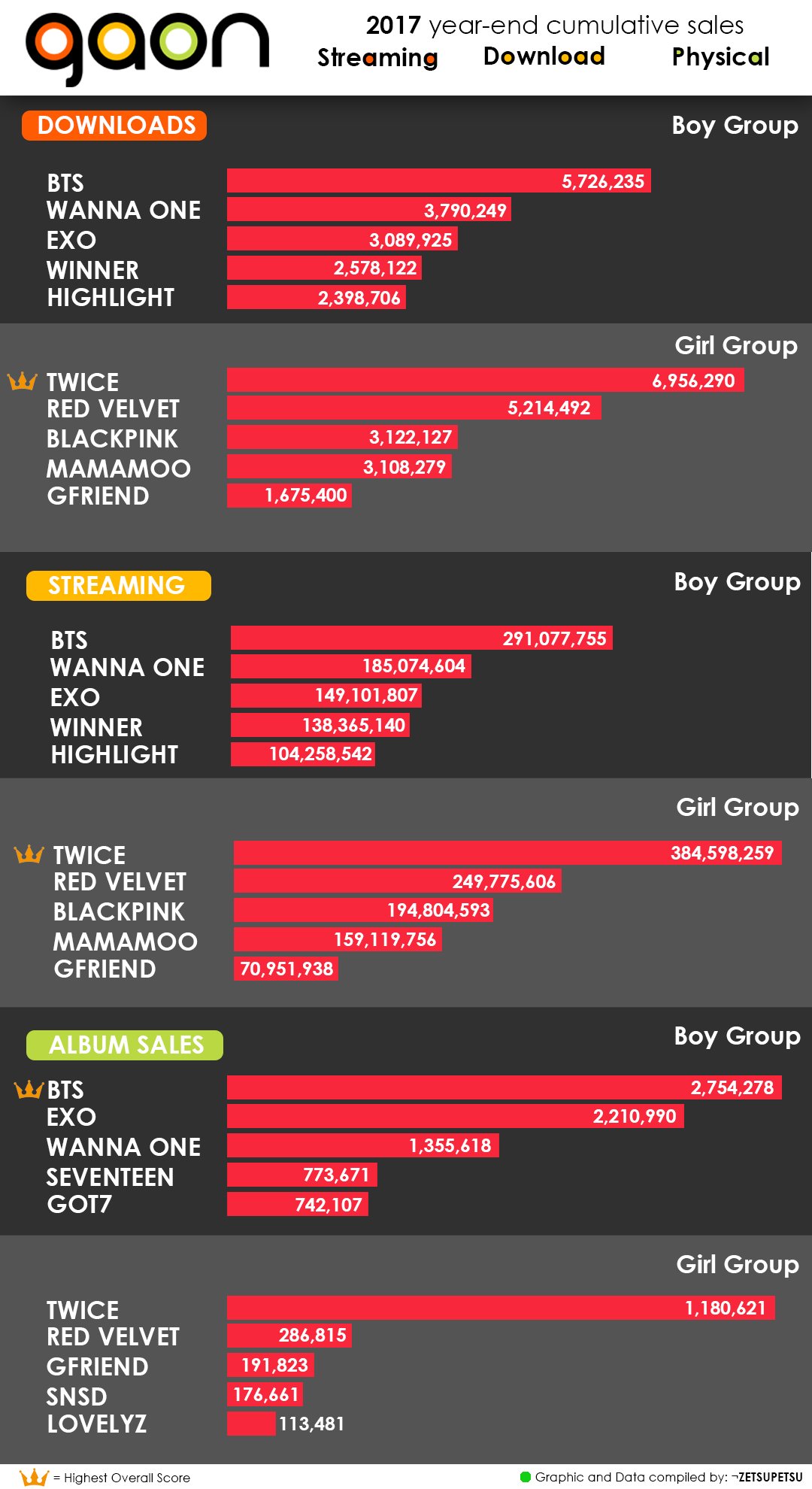 Gaon 2017 Top5 Download, Streaming, Physical BB/GG ในปี2017
