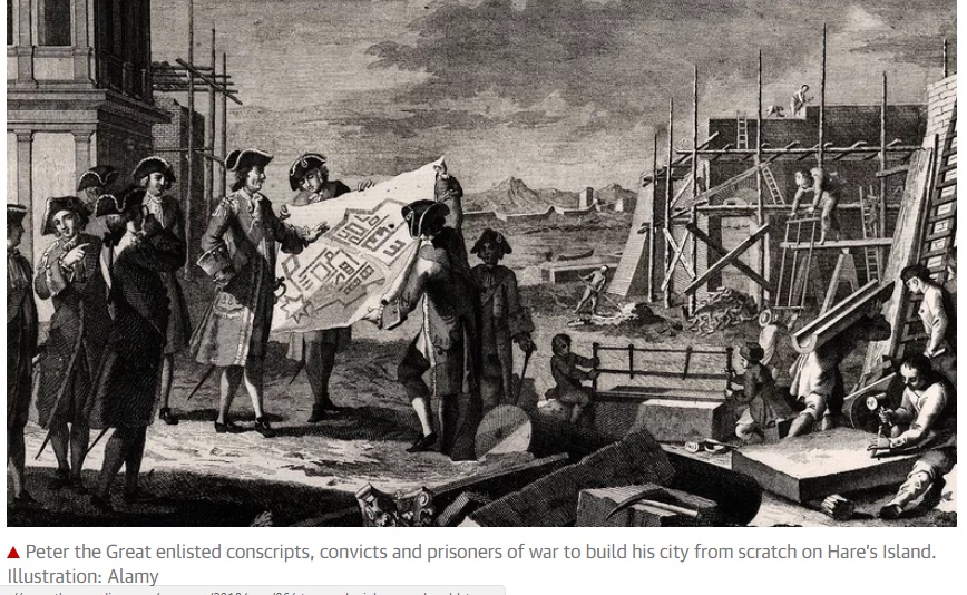 อ่านในเวปหนังสือพิมพ์อังกฤษ The Guardian เรื่องเมืองหลวงเก่าของรัสเซียสร้างในปี 1703 (315 ปีก่อน) บนปากแมน้ำสู่ทะเลบอลติก ที่อยู่บนที่ลุ่มน้ำขัง และปัจจุบันเป็นเมื่องที่มีตึกเก่ามากมายและเสื่อมโทรม ไปอ่าน