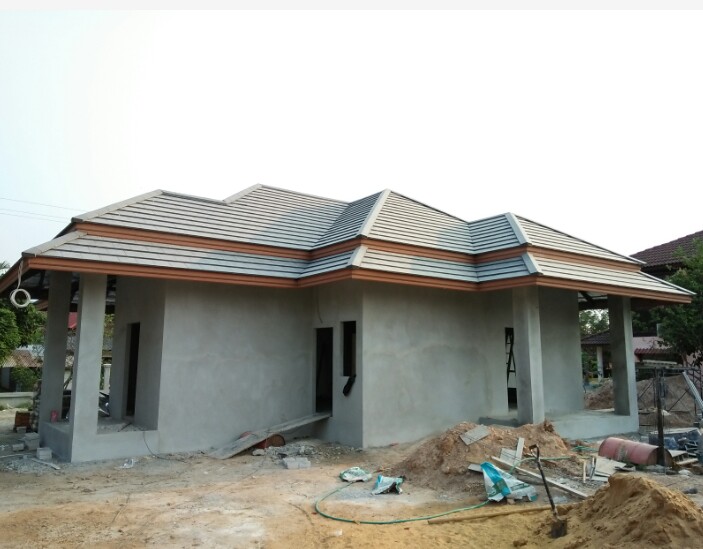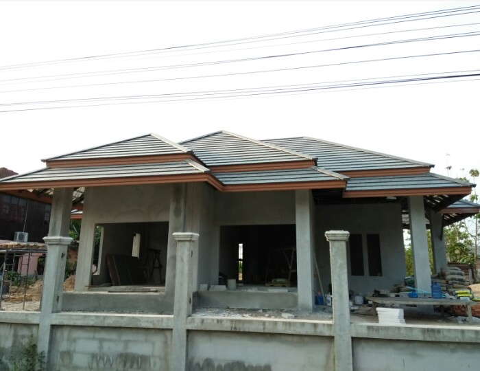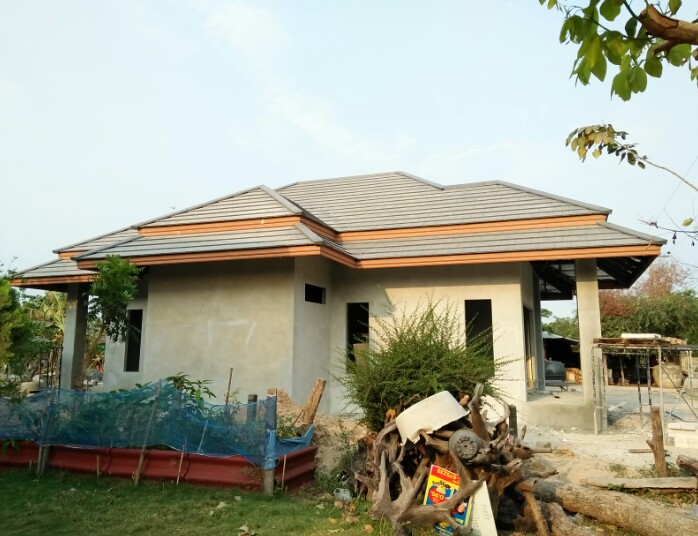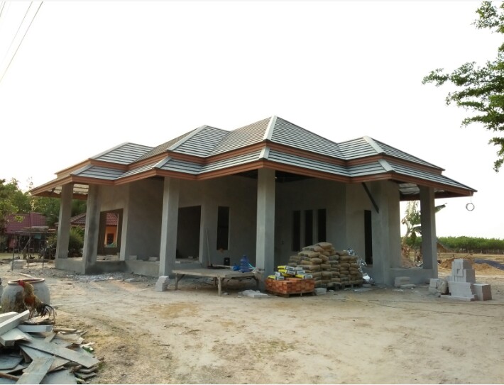 พอดีอยากมาแบ่งปันให้ชมครับ ถึงจะยังไม่เสร็จก็เถอะ ^_^ ถ้าเสร็จแล้วจะเอามาลงรายละเอียดให้ชมอีกครั้งนะครับ หน้างานตอนนี้กำลังทำฝ้าภายในกับเริ่มปูกระเบื้องห้องน้ำอยู่ หลังจริงปรับจากแบบบ้างนิดหน่อยครับ เป็นบ้าน 3 ห้องนอน 2 ห้องน้ำ พื้นที่ใช้สอยประมาณ 140 ตร.ม. สร้างอยู่ที่บ้านต่างจังหวัดครับ กับที่เห็นตอนนี้ใช้งบไปแล้วประมาณ 1.2 ล้าน (รวมพวกวัสดุที่ซื้อมากองไว้รอแล้วอย่างกระเบื้อง สุขภัณฑ์ต่าง ๆ โคมไฟ และอื่น ๆ เป็นต้น)