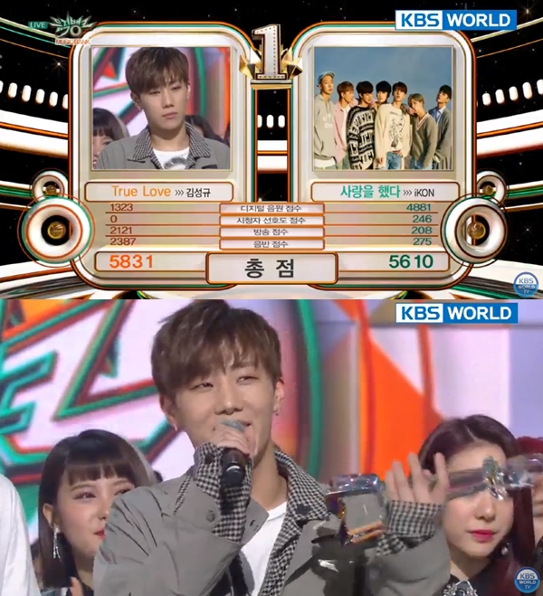 [#KIMSUNGKYU] No.1 #TrueLove2ndWin 🏆🏆 on KBS 'MUSIC BANK' 180309