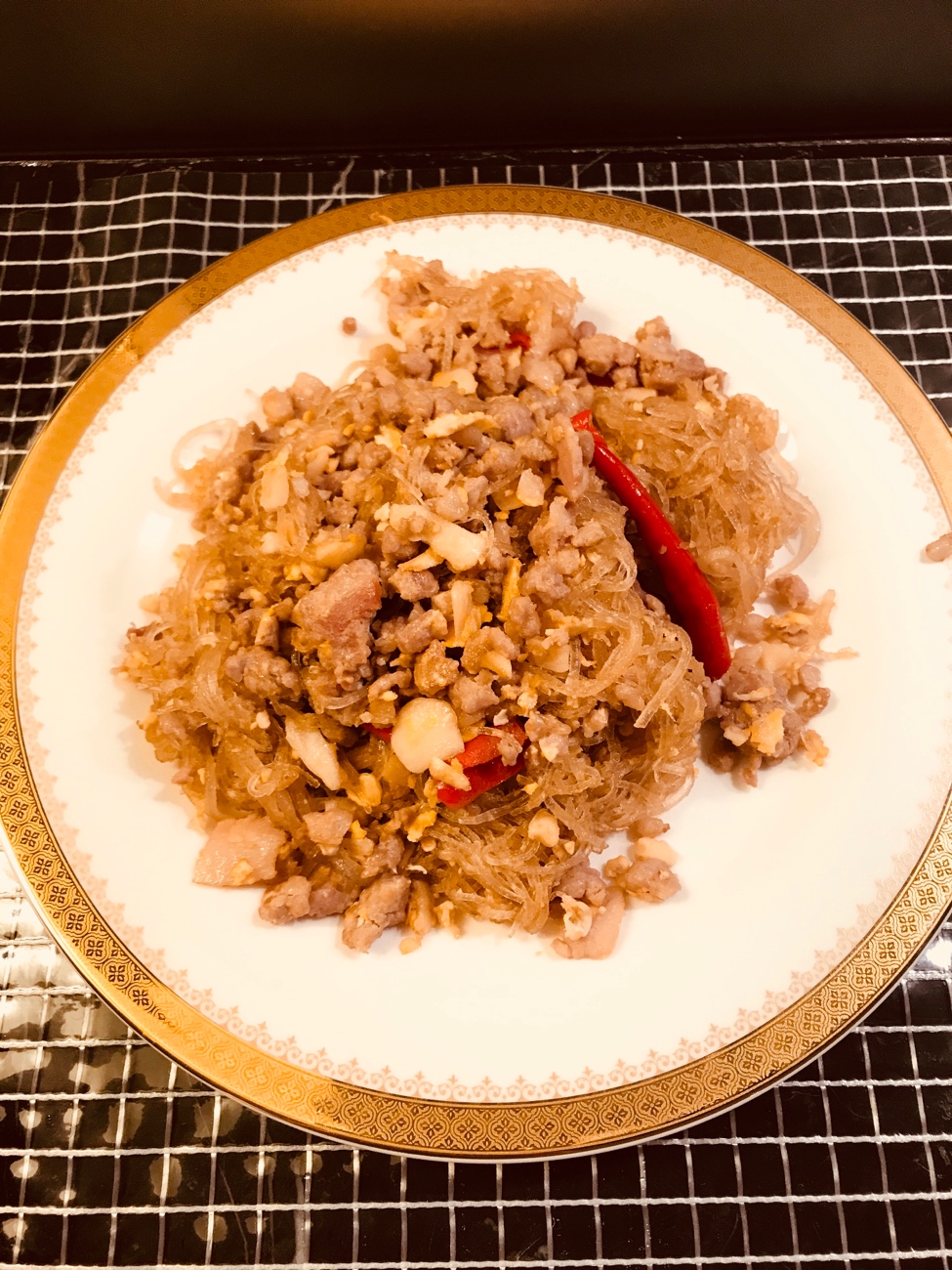 ผัดวุ้นเส้นใส่หมูสับ (ไม่เน้นผัก) เน้นเนื้ออย่างเดียว