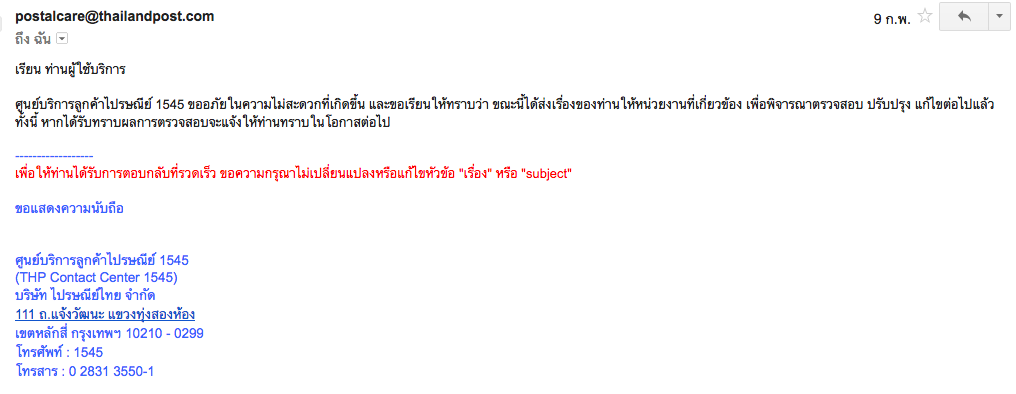 [CR] ไปรษณีย์ไทย ยังไงก็หาย ตามเรื่องก็เท่านั้น