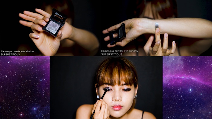 STEP 3: นันเริ่มทาตาด้วย Illamasqua powder eye shadow สี SUPERSTITIOUS