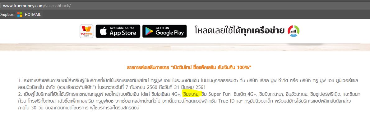 ซึ่งเงื่อนไขที่แจ้งหน้าเว็บไซด์ truemoney ไม่ระบุมาทั้งหมด