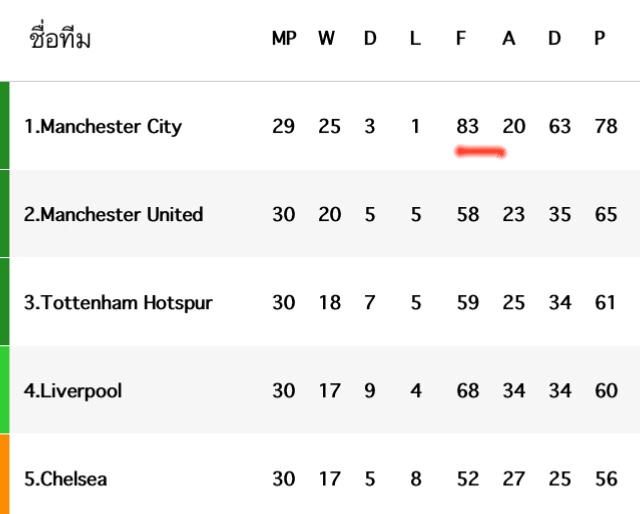 ทีมบุกที่ดีที่สุด เมื่อดูจากตารางคะแนนแล้ว