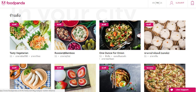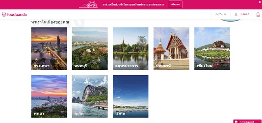 FOOD PANDA ให้บริการใน เขตกรุงเทพมหานคร ,เชียงใหม่,นนทบุรี,ภูเก็ต,สมุทรปราการ,พัทยา,หัวหิน,ปทุมธานี,สมุทรสาคร