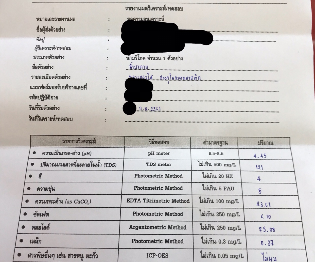 จากรูปเลยครับ ไปวัดมาที่หน่วยเครื่องมือกลาง ม.อ. หาดใหญ่ เนื่องจากเคยเอาน้ำไปตรวจที่ บ้านกร_งน้ำ พนักงานแนะนำว่าถ้าติดใช้ทั้งบ้าน มีหลักแสนครับ แต่ทางร้านก็ไม่มีเอกสารอะไรให้ดูว่าค่าน้ำเท่าไหร่ เลยเอาไปตรวจที่ ม.อ.