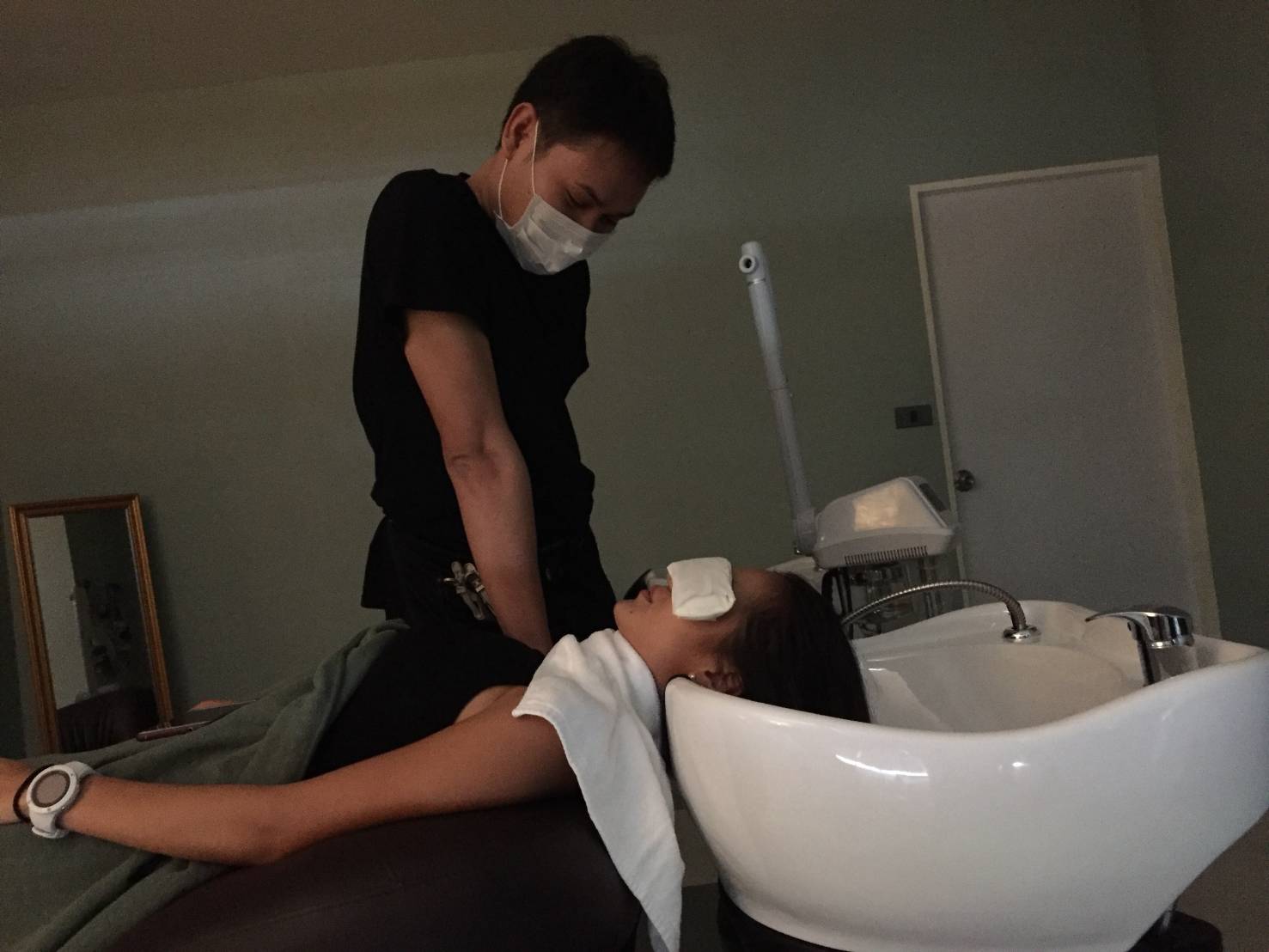 เราว่าขั้นตอนนี้ที่ร้านเค้าคิดมาแล้วว่า ลูกค้าที่จะมาพักผ่อนพร้อมสระผมแบบเรา คืออยากนอนหลับสบายๆ ตื่นมาแล้วสวยพร้อมเลย