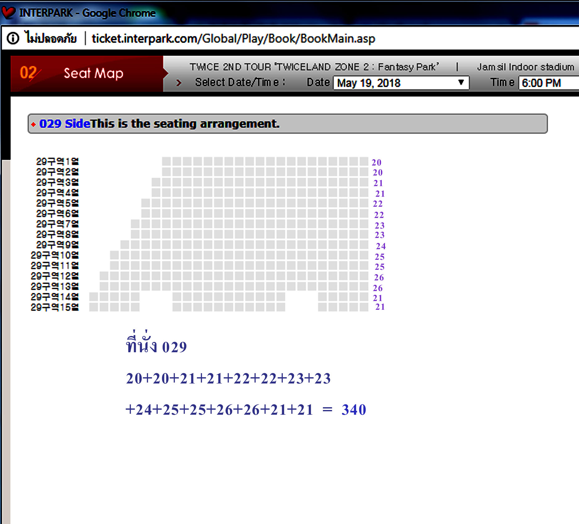 รายละเอียดจำนวนที่นั่งแต่ส่วนอยู่ในสปอยจ้า