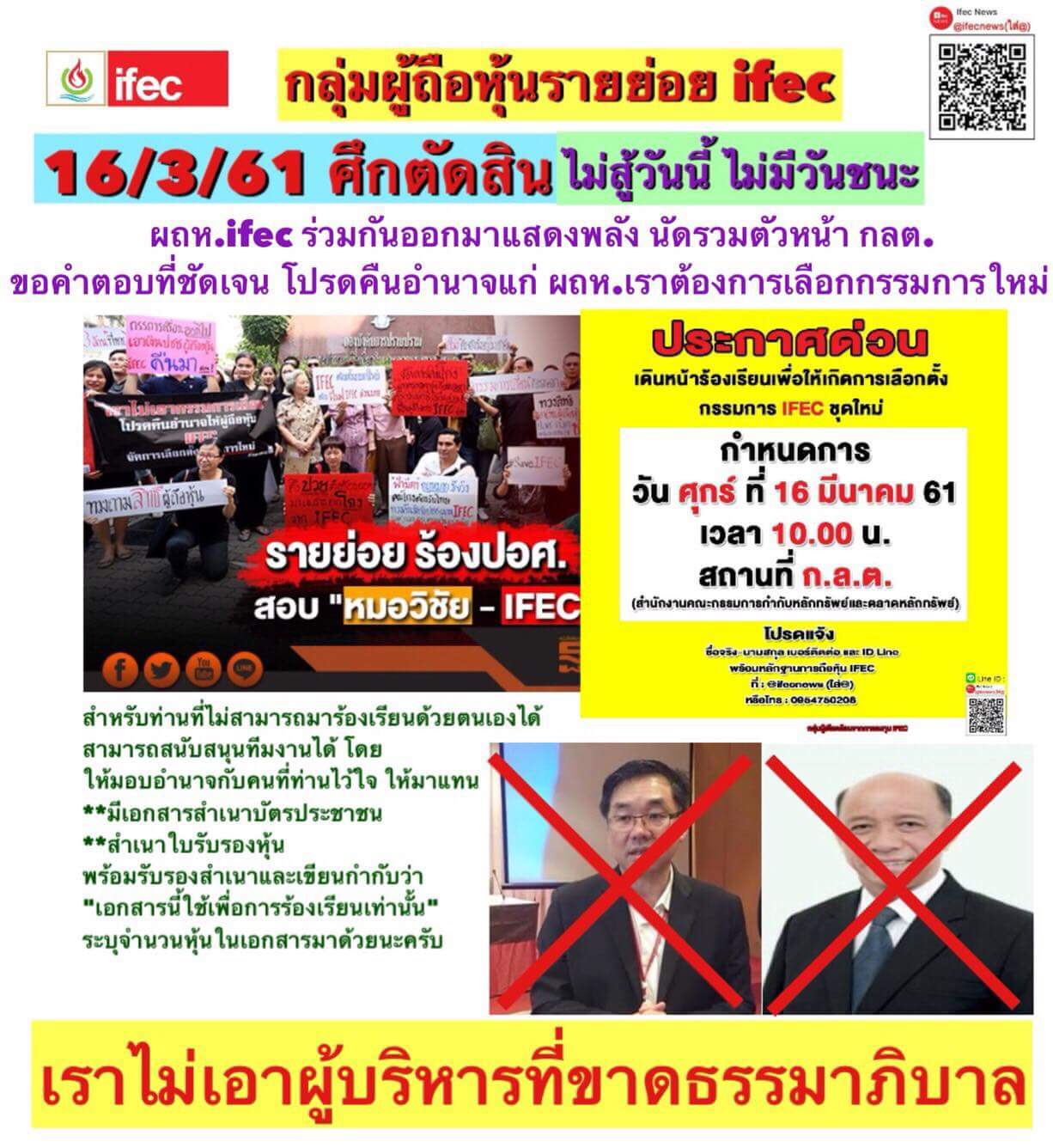 ขอเชิญชวนผู้ถือหุ้นและเจ้าหนี้ IFEC ไปร่วมร้องเรียนที่ ก.ล.ต.