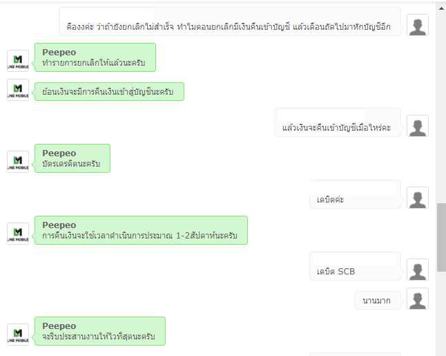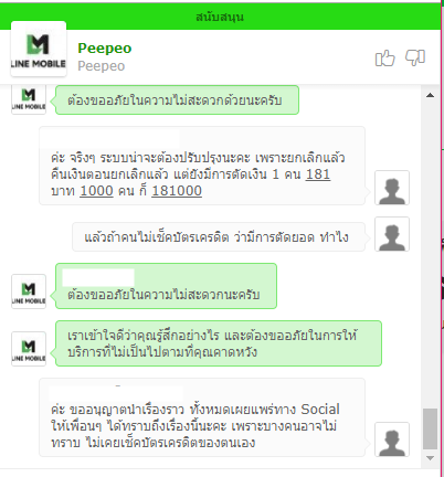 ประเด็นคือยกเลิกเบอร์ของ Line Mobile เรียบร้อยแล้ว และได้รับเงินคืนจากการยกเลิกเบอร์แล้ว แต่เดือนถัดมาคือวันนี้โดนตัดเงินไป 181.37 บาท ถามเจ้าหน้าที่ ก็ได้รับคำตอบว่า การยกเลิกไม่สมบูรณ์ ระบบเลยมีการตัดเงินในเดือนนี้ แล้วเดือนที่แล้วได้รับเงินที่จ่ายล่วงหน้าคืนจากการยกเลิกเบอร์แล้ว แต่เดือนนี้มาตัดบัญชีอีก สรุปคืออะไร???? และอีกนานแค่ไหน กว่าจะได้เงินคืน ใครที่ใช้ค่ายนี้สำรวจเงินในบัญชีด้วยนะคะ เอาจริงถ้าระบบหลังบ้านยังไม่แข็งแรง ปรับปรุงก่อนแล้วกลับมาใหม่ยังทันนะคะ เบอร์ที่มีอยู่ก็นะ
