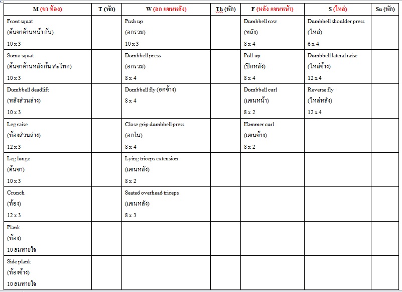 ประเด็นคือ บางวันเล่นเสร็จ ใช้เวลารวมๆ แค่ 20 กว่านี้เอง คือผมกังวลว่า ผมเล่นน้อยไปหรือเปล่า แต่พอไปเทียบตารางกับคนที่เล่นเวท ก็จะประมาณนี้ทั้งนั้น ไม่ได้เล่นมากกว่าที่ผมจัดซักเท่าไร เลยงงว่า ผมเล่นพลาดอะไรไปหรือปล่าว เขาเล่นอะไรกันอีกมันถึงเป็นชั่วโมง หรือรวมเวลาวอร์มอัพ คูลดาวน์ด้วย ยังไงอยากให้ช่วยแนะนำทีครับ