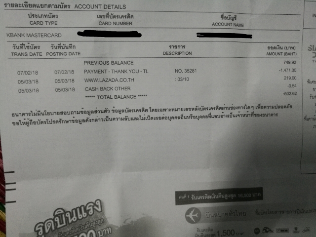 เหตุที่เราเสียความรู้สึกครังนี้เกิดจาก วันที่ 7/02/18 เราไปจ่ายเงินค่าบัตรเครดิตหน้าเค้าเตอร์ ของธนาคาร กสิกรไทย สาขาเช็นทรัล มหาชัย ในช่วงต้นเดือนคนจะเยอะเรารอนานนิดนึงจนธนาคารใกล้ปิดก็ถึงคิวเรา เรายื่นบัตรให้พนักงานหน้าเค้าเตอร์ แล้วแจ้งว่าจ่ายค่าบัตร บอกจ่ายเต็มจำนวน (เราเป็นคนจ่ายตรงเวลาตลอด ไม่เคยสักครั้งที่จ่ายช้า และจ่ายยอดเต็มเสมอ) พนักงานก็แจ้งยอดเรา ว่าต้องจ่าย 1,472 บาท ทั้งที่ยอดจริงมันแค่ 749.92 เราจ่ายตามที่พนักงานแจ้ง เพราะเราเชื่อว่าระบบธนาคารเชื่อมั่นได้ แต่มันกลับไม่ใช่แบบที่เราคิด เพราะวันที่ 14/03/18 เราไปจ่ายค่าบัตรตามปกติ แต่คราวนี้เราไปจ่ายที่ กสิกรไทย สาขาเซ็นทรัลมหาชัย เรายื่นบัตรให้พนักงานแล้วบอกว่าจ่ายยอดเต็ม พนักงานรับบัตรไปเช็คยอดกับเครื่องประมาณสองรอบ แล้วแจ้งว่าไม่มียอดจ่าย เพราะเดือนที่แล้วเราจ่ายเกินไป 500 กว่าบาท เราเลยบอกว่าเป็นไปได้เหรอ เราจ่ายตามที่พนังานแจ้งเลยนะ ให้เขาเช็คยอดจากบัตรก่อนแล้วค่อยจ่าย ยอดมันจะเกินได้ไง แล้วถ้าเขาให้เราจ่ายเกิน เขาไม่แจ้งเราเลยเหรอ พนักงานทีเซ็นทรัลบอกให้ลองเช็คยอดกับคอลเซ็นเตอร์ดู เราโทรไปเกือบสิบนาทีได้กว่าจะมีคนรับ