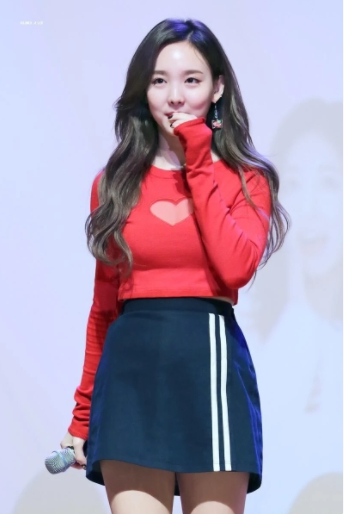 นายอนดูไร้เดียงสากับเสื้อเชิ้ตที่มีหัวใจตัดอยู่ตรงกลางคู่กับกระโปรง มันดูเป็นลุคที่ง่ายๆแต่มีความฤดูใบไม้ผลิมากเว่อร์ ความตาข่ายหัวใจและการจับคู่กันของสีที่สดใสที่ตัดด้วยสีเข้มอีกที ริ้วของกระโปรงยิ่งช่วยเสริมให้ขานายอนดูยาว เสื้อที่สั้นด้านบนยิ่งเน้นให้ดูเอวเล็ก เมื่อมารวมกันทั้งหมดพร้อมกับต่างหู ทำให้ดูพิเศษไปเลย