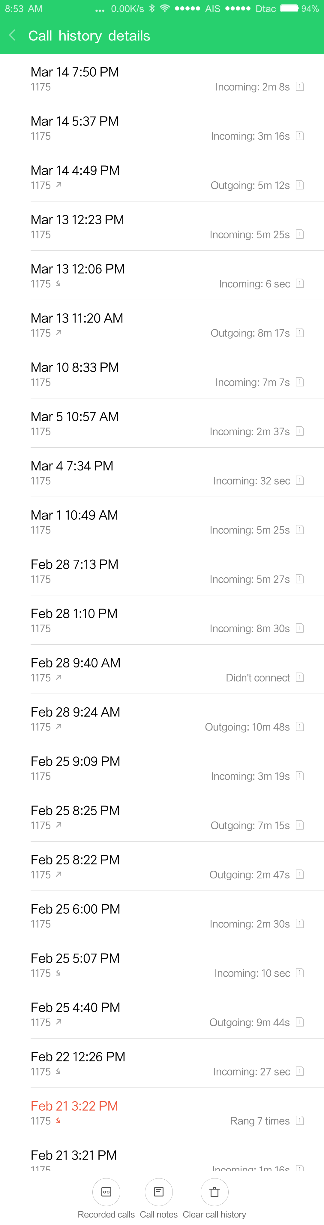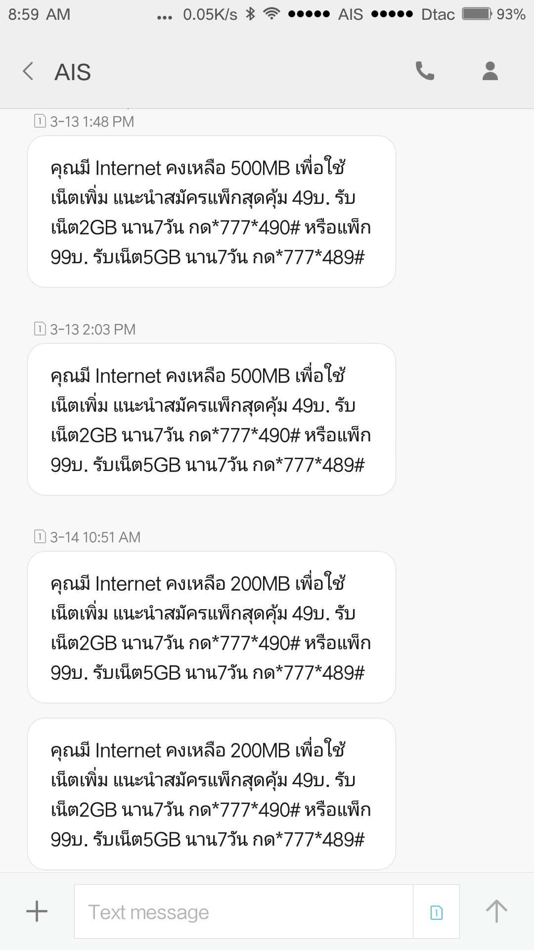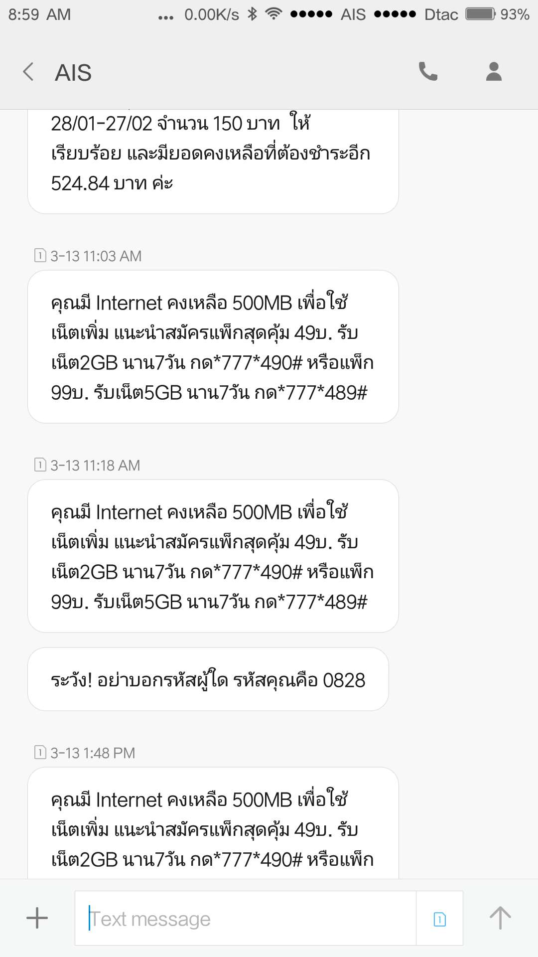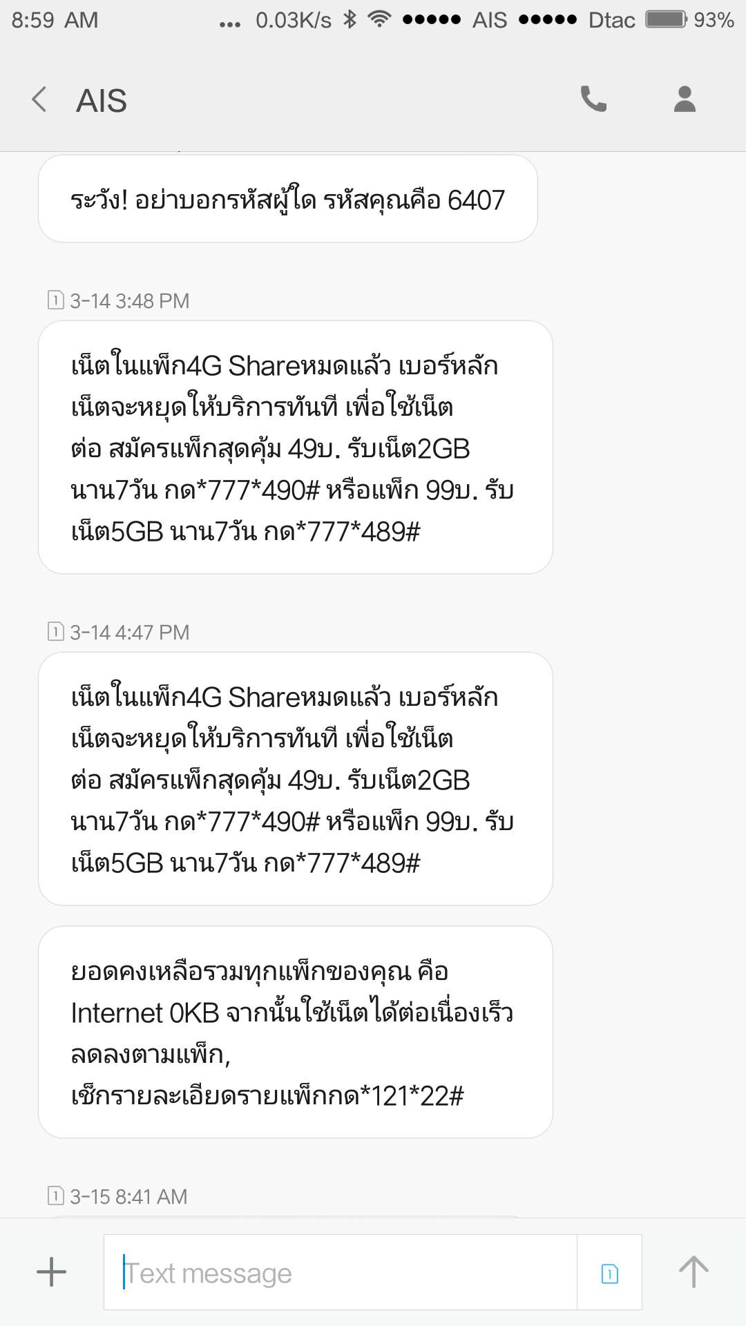 จึงแจ้งให้เจ้าหน้าที่ 1175 ทราบตั้งแต่สิ้นเดือนที่แล้ว เจ้าหน้าที่แจ้งว่าแอพไม่อัพเดท แต่ให้สบายใจแพ็คเกจเป็น ishare899 แล้ว จึงได้เชื่อและใช้ต่อ จนวันที่ 13/3/18 มีข้อความว่าเน็ตใกล้จะหมดแล้ว จะหักเงิน 49 บาท มันแปลกมากเราเป็นรายเดือนจะหักอย่างไร มีข้อความแจ้งจนเน็ตหมด โทรไปเช็คเจ้าหน้าที่ก็บอกให้สบายใจเป็นแพ็คเกจ ishare899 แล้ว ไม่มีมีการหัก แต่แล้วเมื่อวาน 15/3/18 บอกว่าเน็ตหมดแล้ว ตอนนี้ความเร็วได้แค่ 384 kbps เท่านั้น เจ้าหน้าที่โทรไปหลายรอบแล้วก็ไม่แก้ไขให้เสร็จเสียที แถมมีเงินค้างชำระที่ใช้โทรเกินอีก (ทั้งที่ได้ 500 นาที)