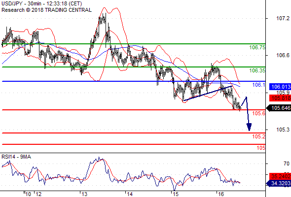 จุดที่ต้องการ: สถานะขายต่ำกว่า 106.10 เป้าหมายต่อไปที่ 105.60 และ 105.20