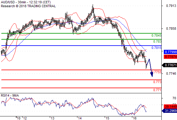 จุดที่ต้องการ: สถานะขายต่ำกว่า 0.7815 เป้าหมายต่อไปที่ 0.7755 และ 0.7730