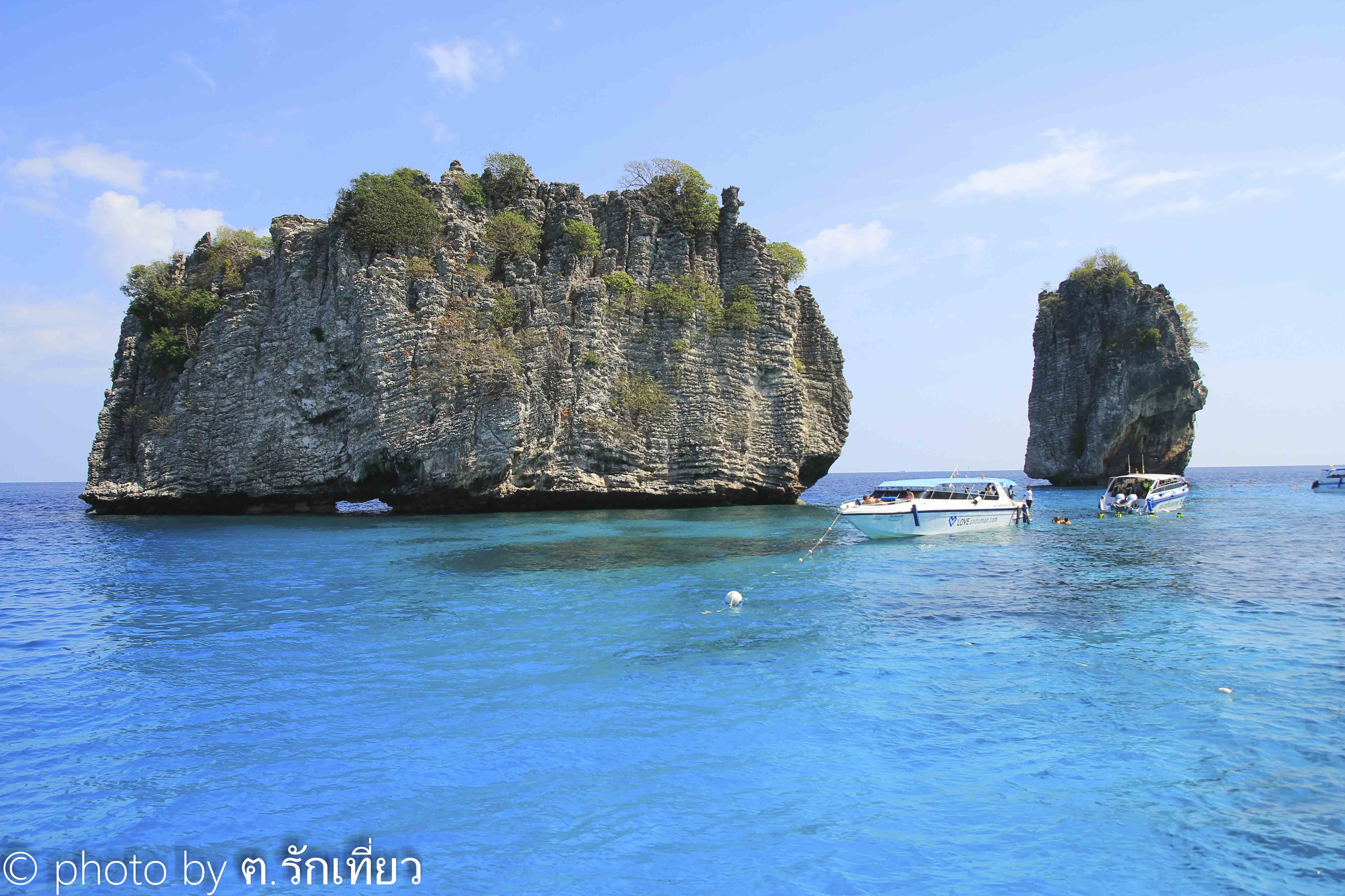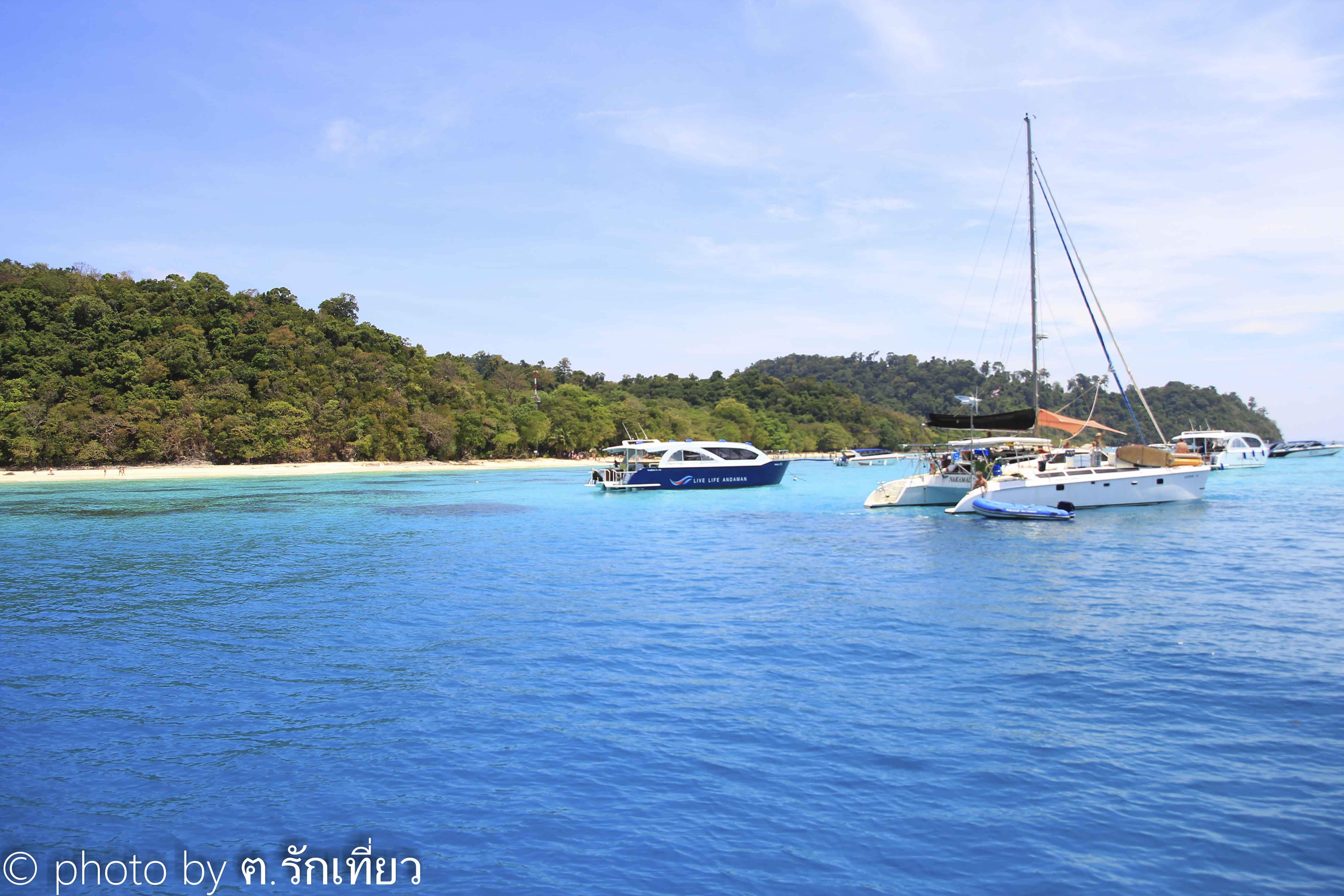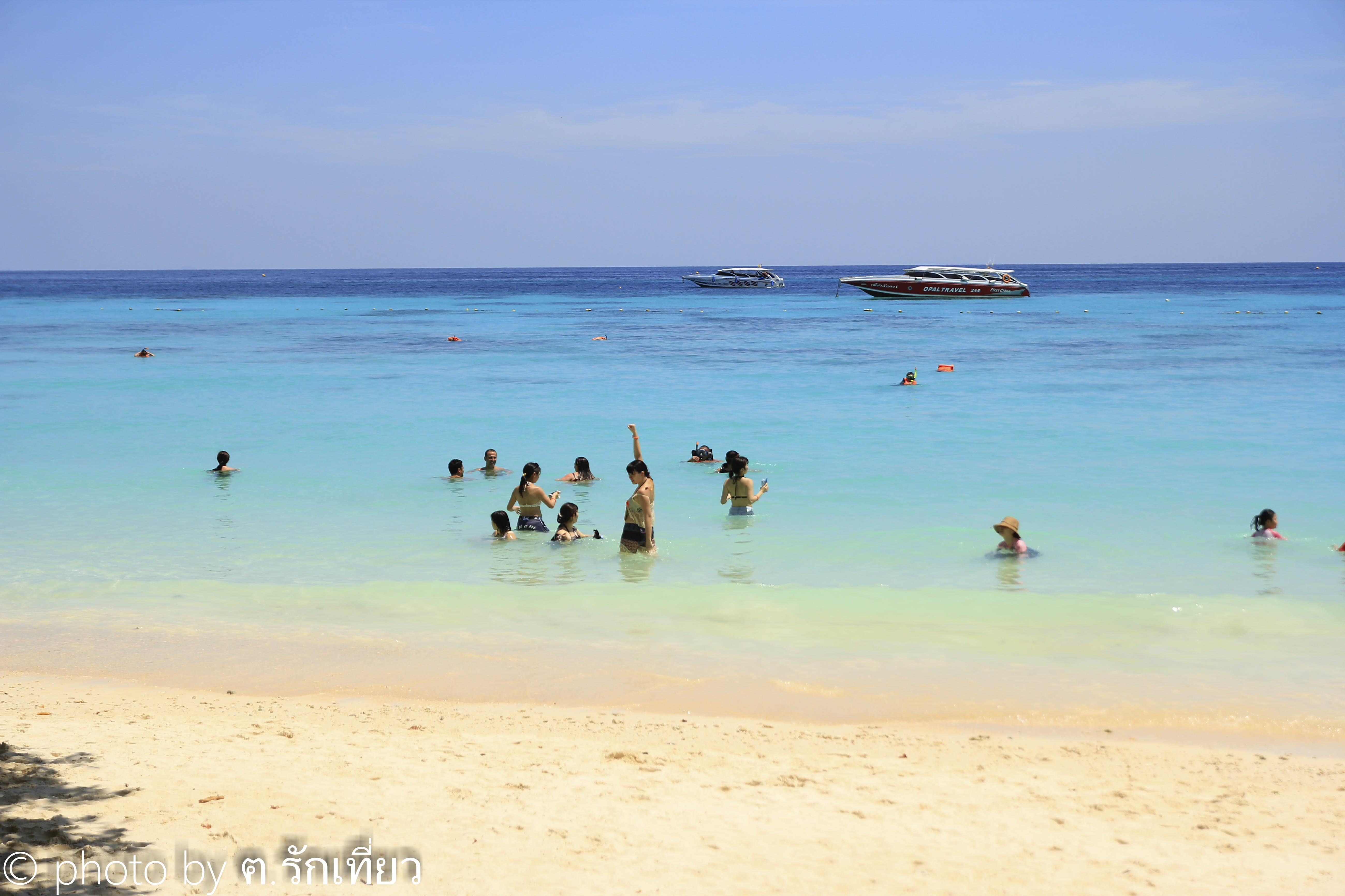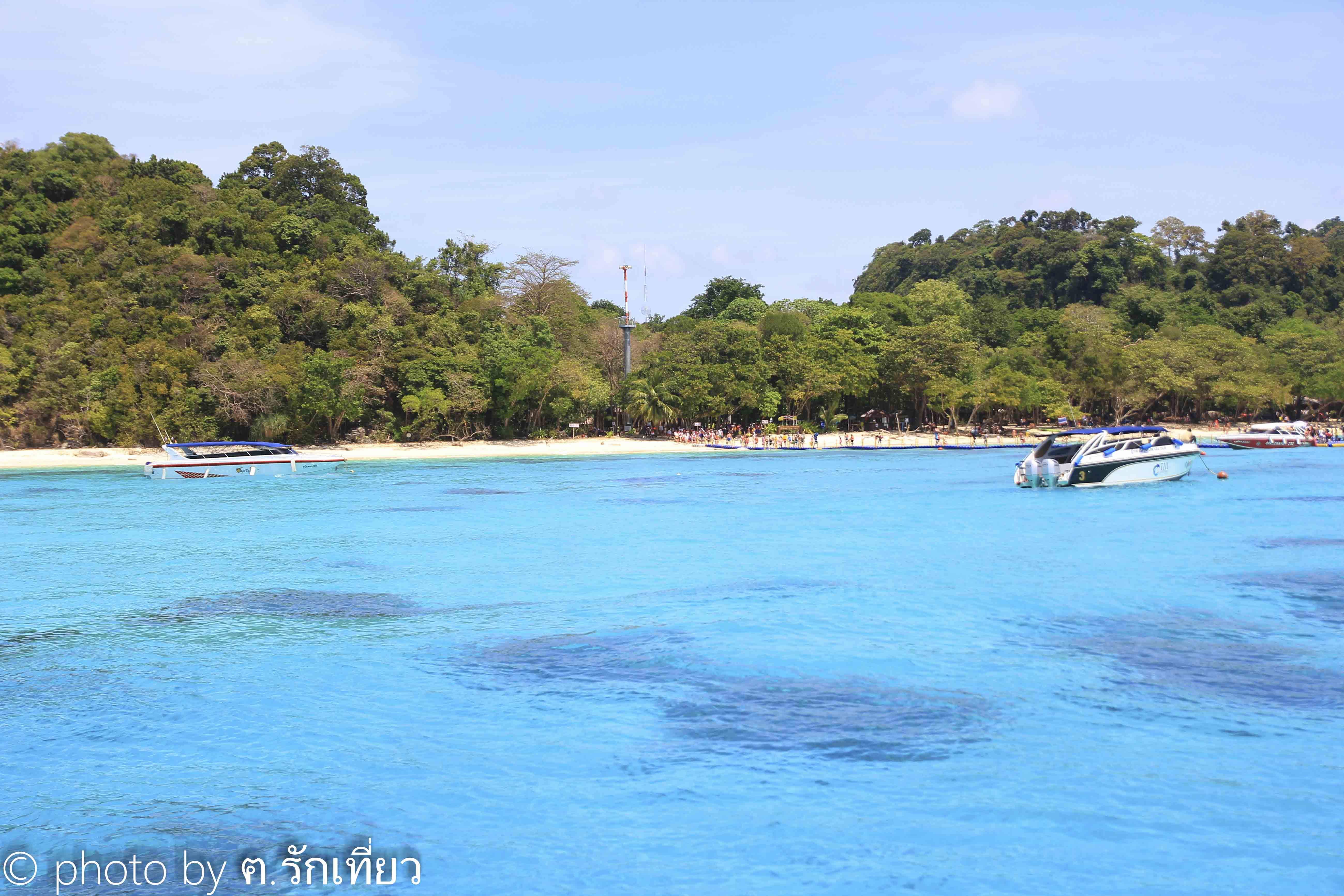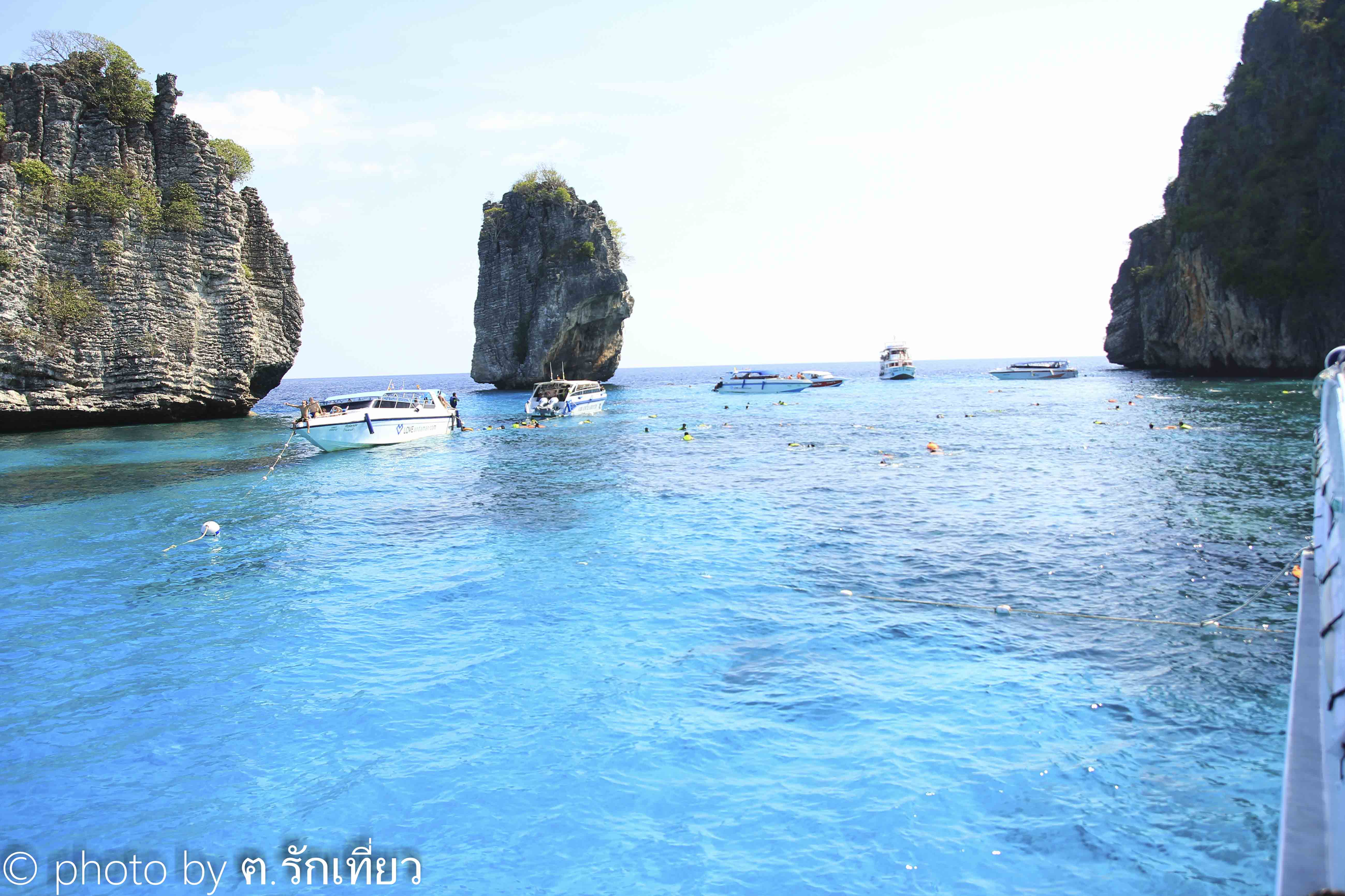 ระหว่างทางได้เห็นน้ำทะเลสีคราม และนักท่องเที่ยวที่เหมาเรือกันมาครับ....