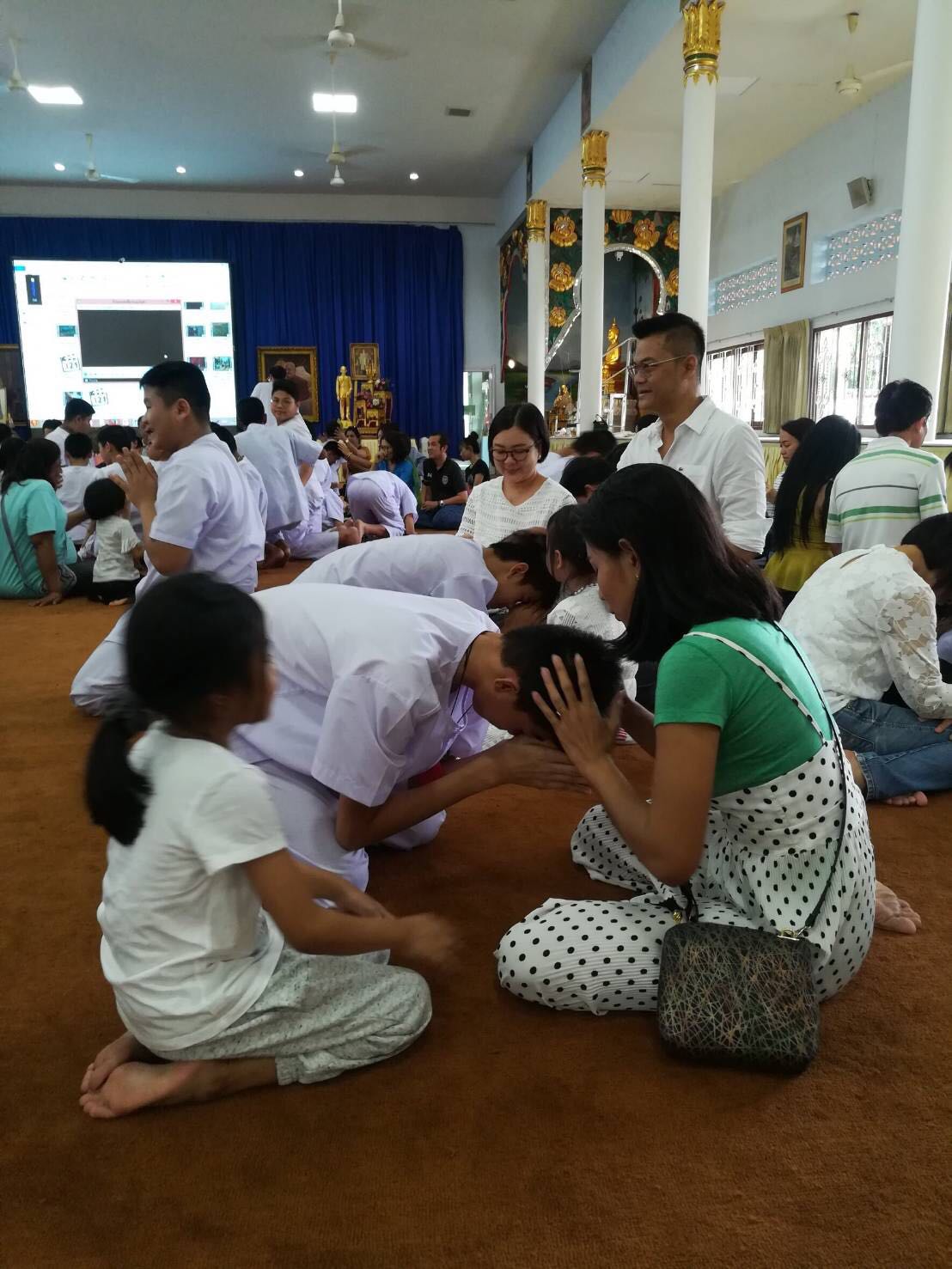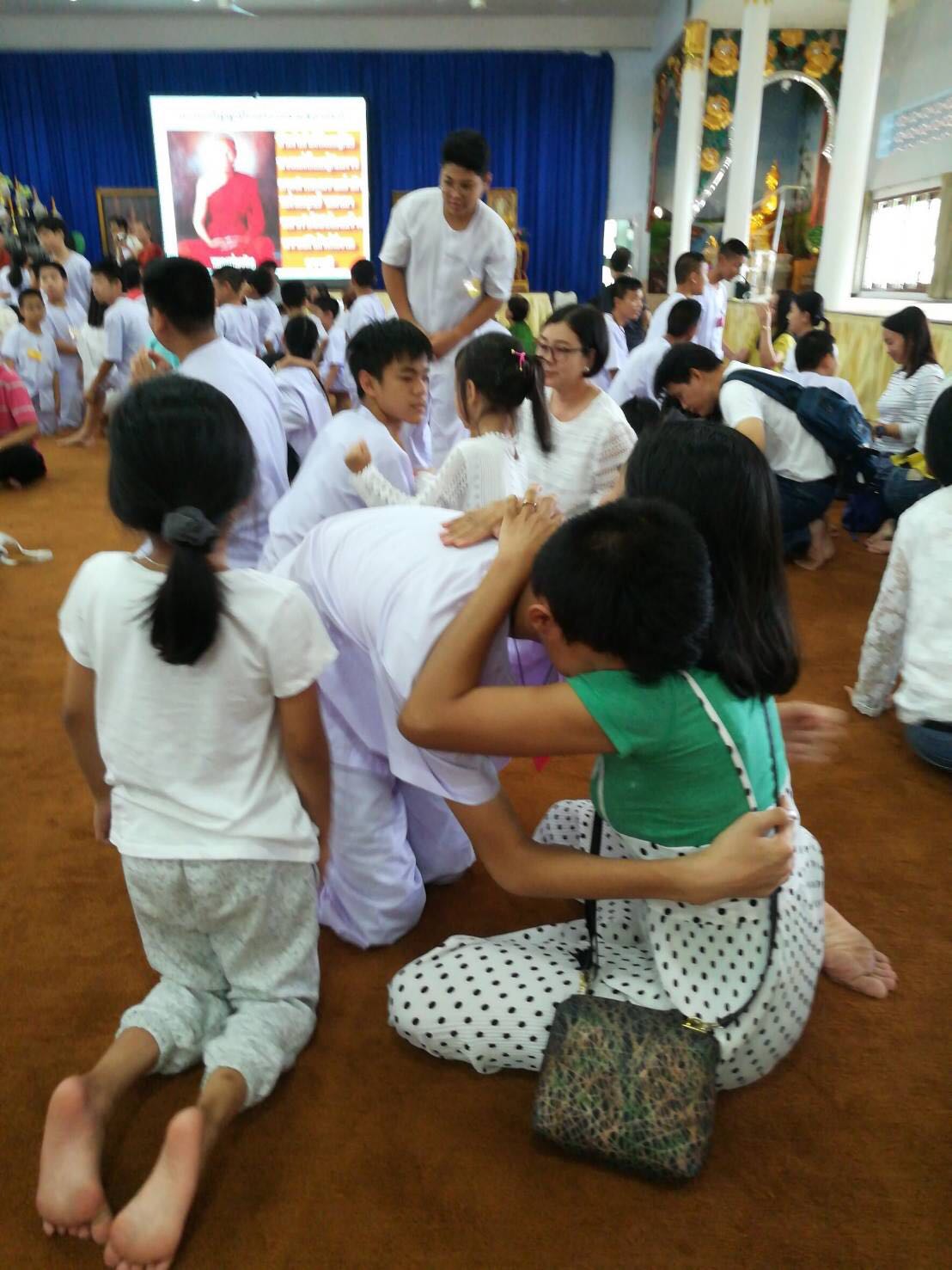มาถึงวันกลับ ทางวัดให้ลูก ๆ กราบขอขมาพ่อแม่