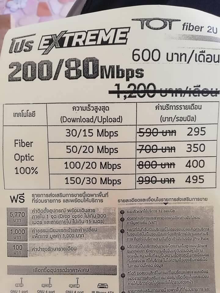 เน็ต tot fiber 2u ความเร็ว 30/15 Mb ราคา 590 ดีไหม