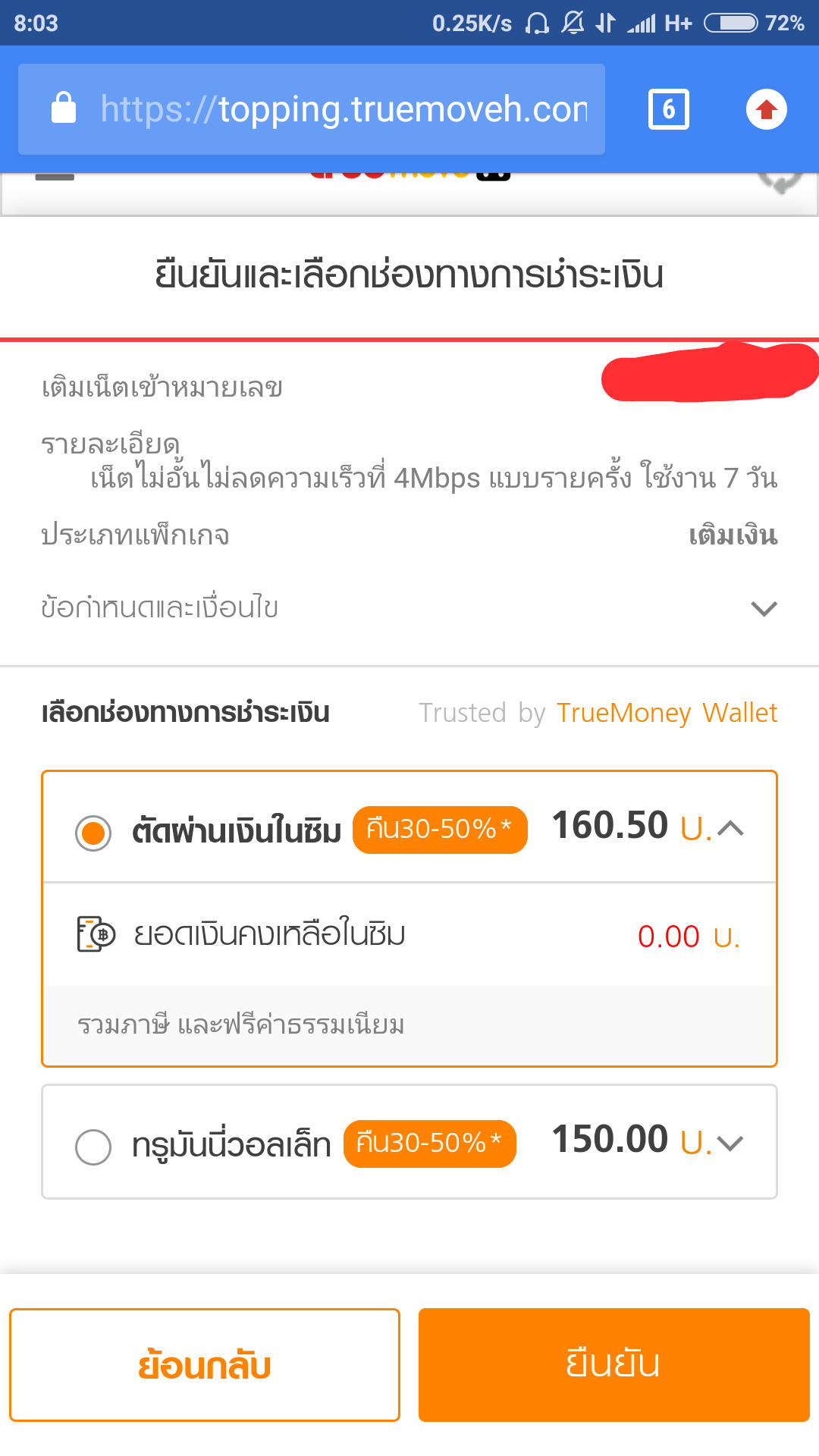 จะเติมเน็ตผ่านเว็ป https://topping.truemoveh.com/ แต่ทำไม่ได้เพราะมันขึ้นว่าเงินในซิม เป็น 0 ทรูช่วยผมทีครับ