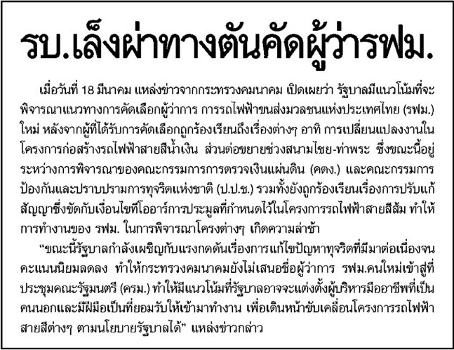 รบ.เล็งผ่าทางตัน คัดผู้ว่า รฟม.