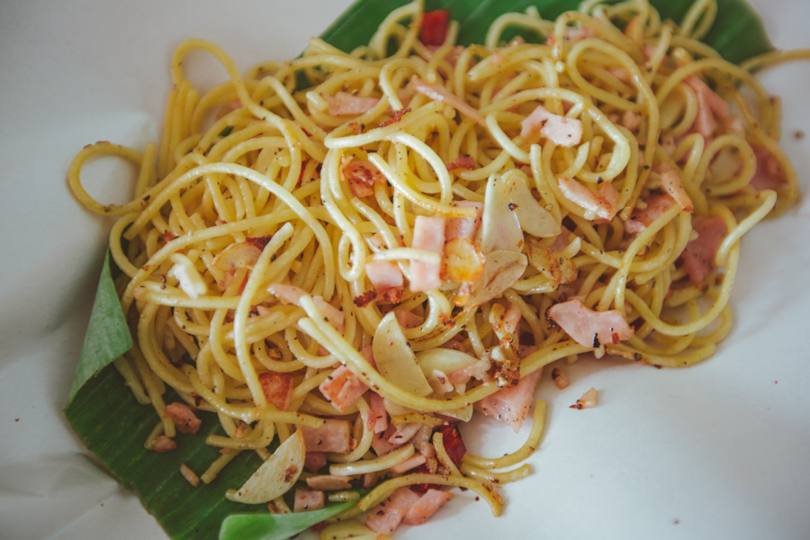 ข้าวคั่วกลิ้ง สปาเก็ตตี้หอยลาย สปาเก็ตตี้เบคอน หมี่กระเฉด เกี๊ยวน้ำ เกี๊ยวทอด