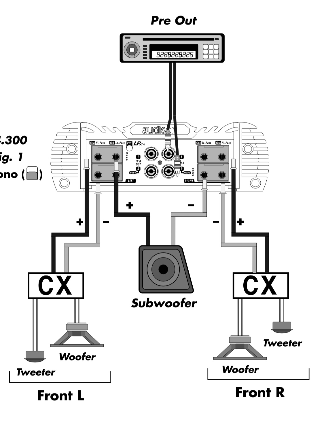 จากรูปแรก ผมพอจะทราบวิธีการต่อให้ไป 65Wx2 + 220W ได้จากรูปที่ 3 แต่ถ้าผมต้องการต่อให้เป็น 210W x 2 (4 Ohms) ผมจะต้องต่อแบบไหนครับ
