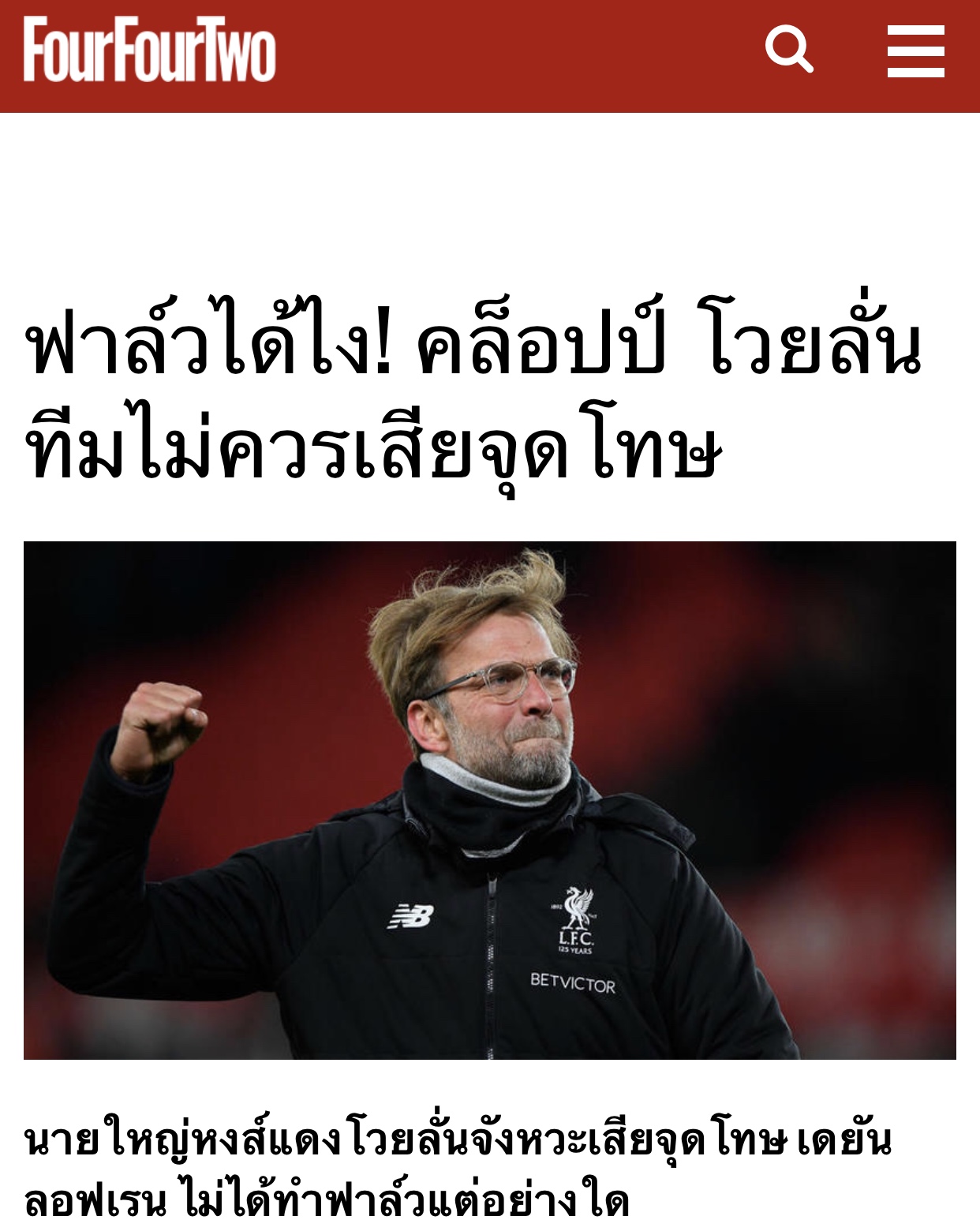 แฟนหงส์กรีดร้อง !! : แฉ คลอปป์จวก 2 แข้งลิเวอร์พูลในห้องแต่งตัว หลังเกมแดงเดือด
