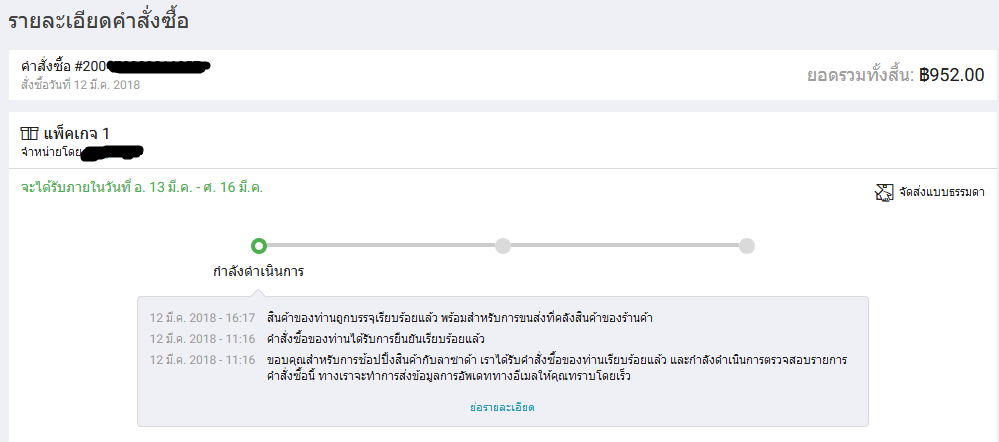สั่งซื้อของไปตั้งแต่วันจันทร์ช่วงเช้าเลย