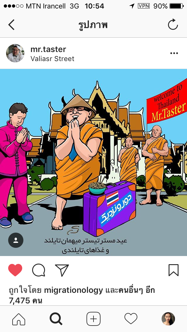 ด้วยว่าเมื่อเช้าเราเปิดอินสตาแกรมแล้วไปแตะตาเข้สกับภาพที่นักชิมชาวอิหร่านโปรโมทไว้ว่าจะมาชิมอาหารที่ไทย ซึ่งเราก็ติดตามเขามาสักระยะหนึ่งแล้ว