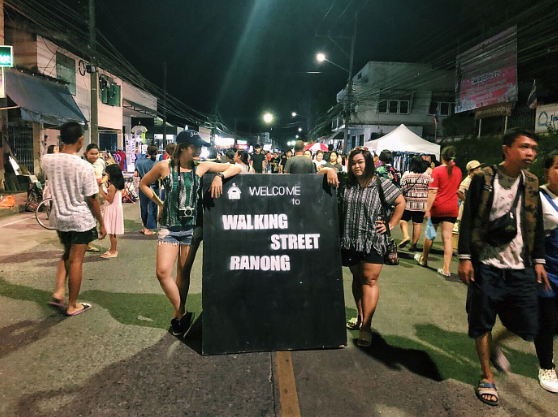 คืนนี้เรา4คนต้องทำความรู้จักกับถนนคนเดินจังหวัดระนองซะหน่อย