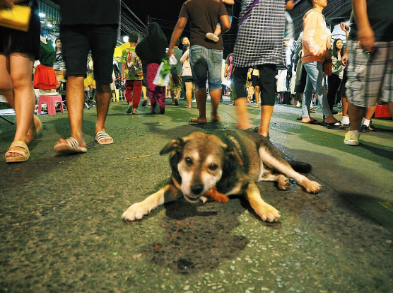 หมาน้อยแย่งซีน นอนขวางกลางถนนเลยจร้า555