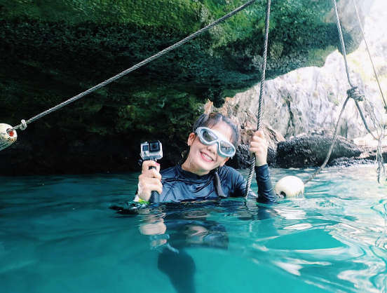 ยังสามารถดำผ่านช่องถ้ำเข้าไปได้ ตามภาพค่ะ คนดำน้ำไม่แข็งจะมีเชือกให้เกาะเข้าไปค่ะ
