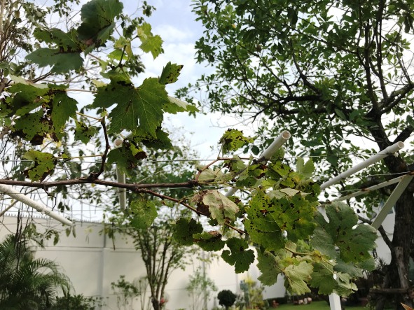 ช่วยดูให้หน่อยครับ ต้นองุ่น เละเทะมากๆ เกิดจากอะไรครับ(มีรูป)