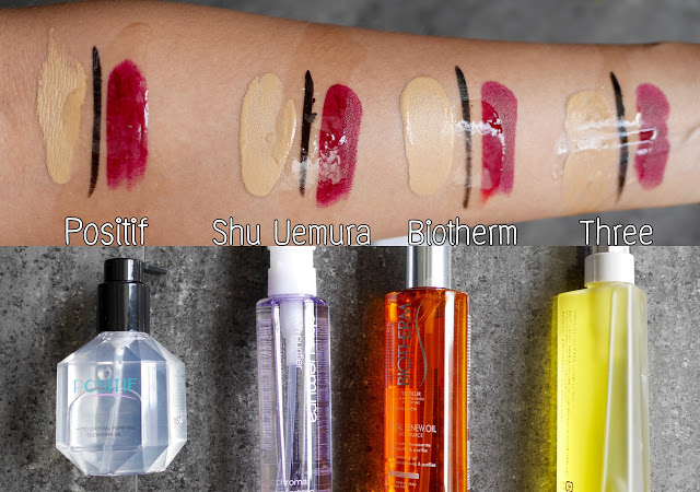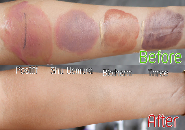 ที่มีทั้งน้ำยาทำความสะอาดและน้ำมันที่ช่วยสลายเครื่องสำอางกันน้ำอยู่แล้วก่อนที่จะล้างด้วย