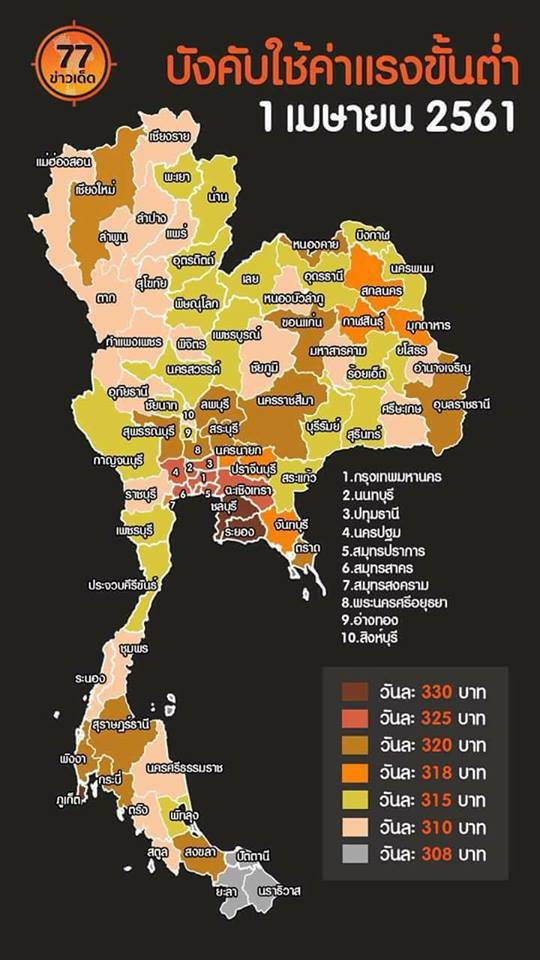 กฏหมายประกาศบังคับใช้ปรับค่าแรงขั้นต่ำทั่วประเทศ เริ่ม 1 เมษายน 2561