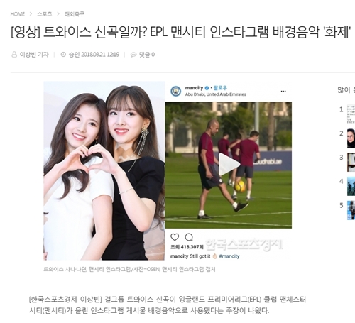 วันนี้ในเกาหลีก็มีข่าวนี้พูดถึงข่าวลือเกี่ยวกับเพลงใหม่ของทไวซ์ที่ไปปรากฏอยู่ในไอจีของทีม Man City แต่ยังรอคนมายืนยันว่าใช่เสียงของซานายอนจริงรึเปล่า