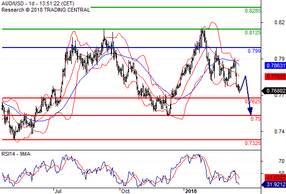 จุดที่ต้องการ: สถานะขายต่ำกว่า 0.7990 เป้าหมายต่อไปที่ 0.7625 และ 0.7500