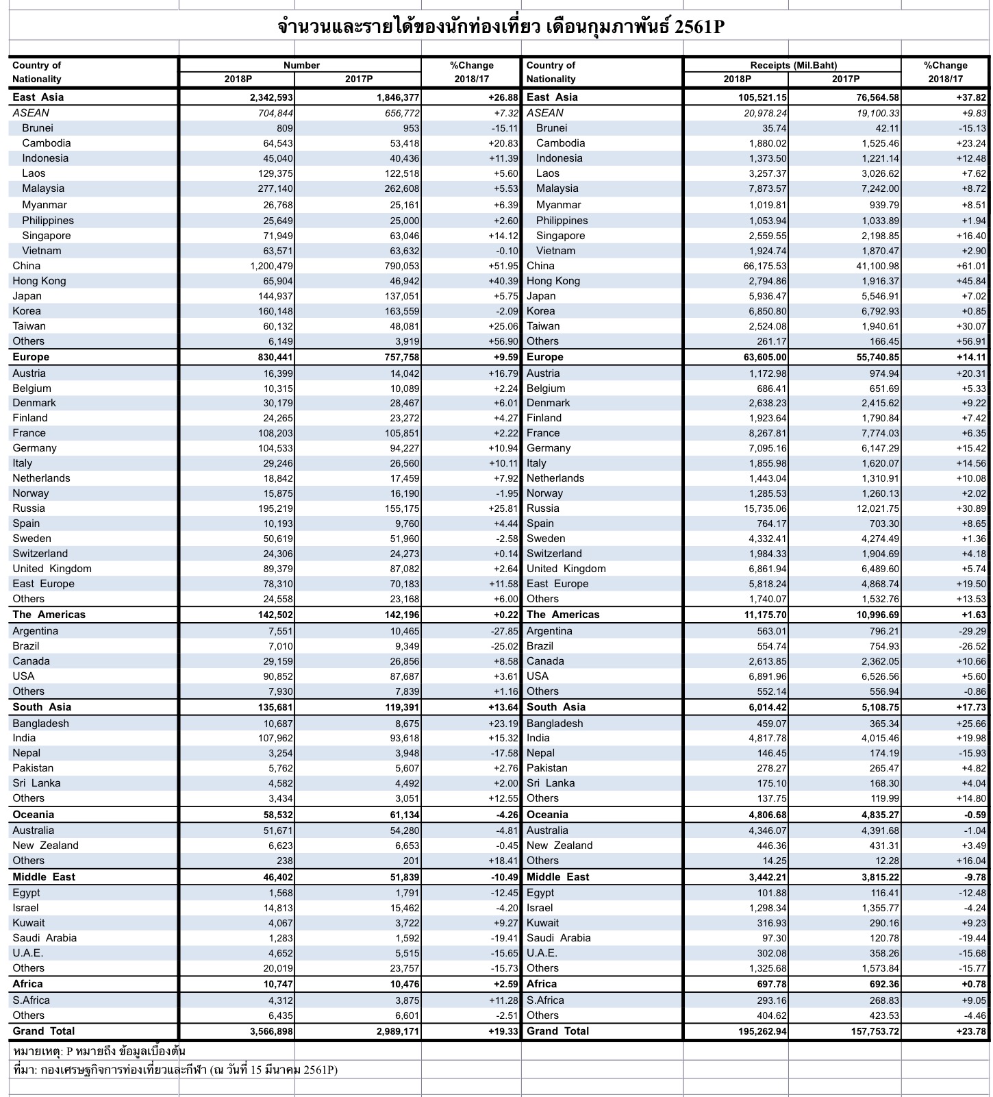 จำนวนนักท่องเที่ยวต่างชาติ เดือน กุมภาพันธ เติบโต เกือบ 20% เมื่อเที่ยบกับช่วงเดียวกับปีก่อน การส่งออกโต 10.3%