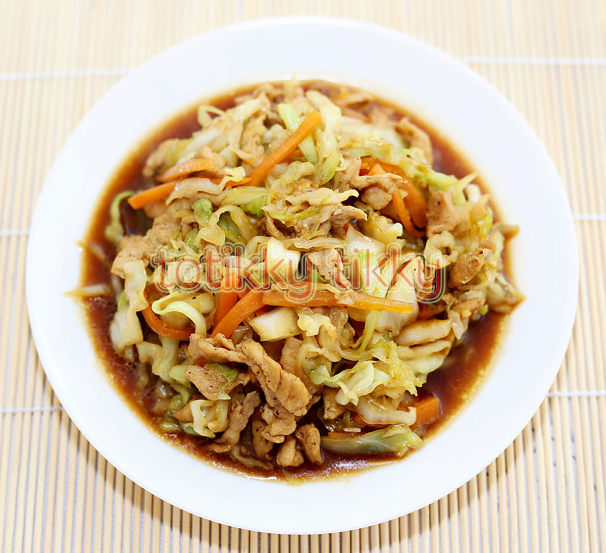 ผัดกะหล่ำปลีใส่เบคอนหอมใหญ่และกระเทียม