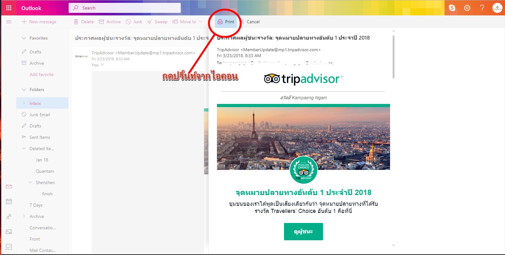 Outlook แบบใหม่ สั่งปริ้นท์แล้วไม่มีเนื้อหาค่ะ กลายเป็นหน้าว่างซะงั้น