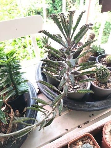 ต้นยืดจะดูยาวไปหน่อย ถ้าไม่ชอบแบบนี้ก็ปาดยอดปักดินกระถางใหม่เลยก็ได้ค่ะ ต้นแม่พอแผลแห้งแล้ว เดี๋ยวเค้าจะส่งใบใหม่มาให้เชยชมเองค่ะ