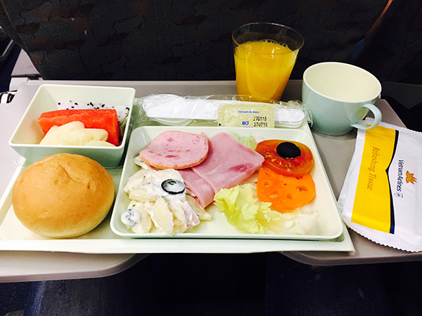 นั่งเครื่องได้สักพักก็โดนปลุกให้กินอีกแล้ว ลืมบอกไป เครื่องที่บินจากเวียดนามเป็นเครื่องใหญ่ที่มีอุปกรณ์ความบันเทิงให้เราเลือกใช้ แต่สำหรับผมคือไม่ไหวแล้ว ขอกินแล้วงีบดีกว่า